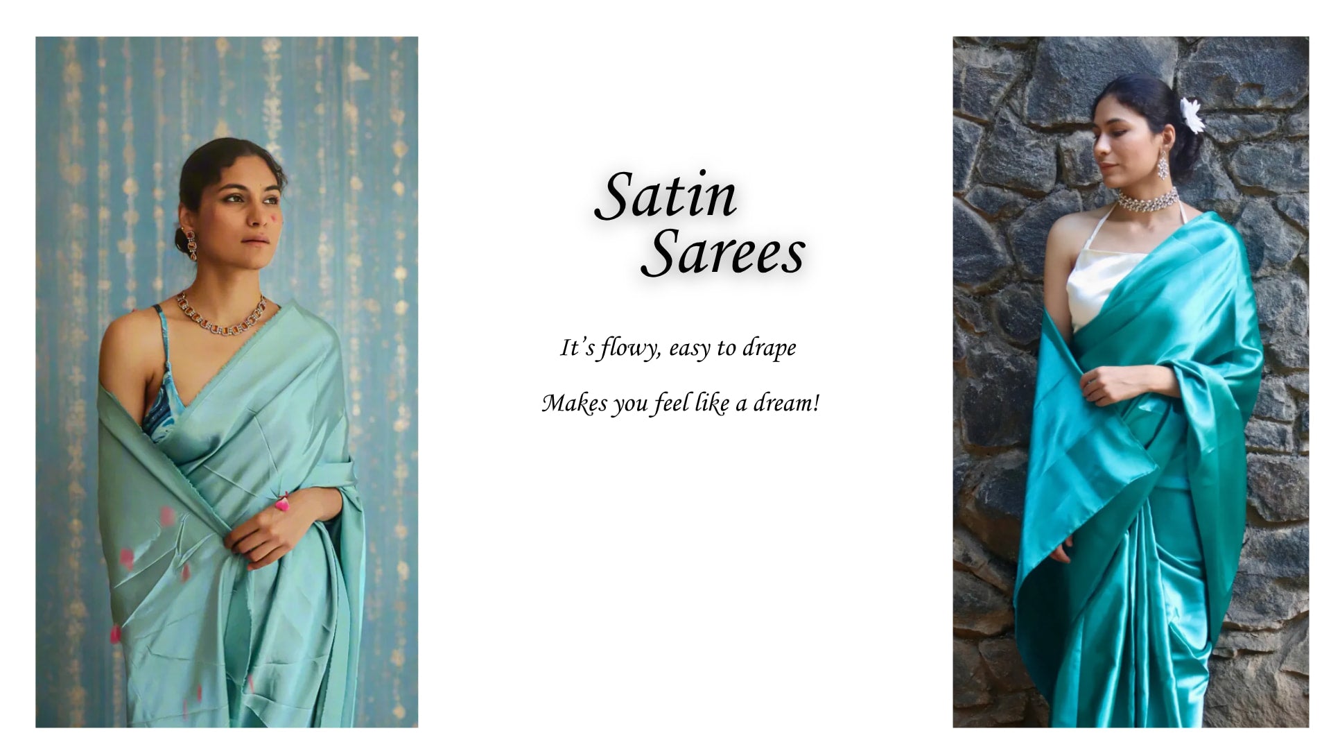Ocean Mint Satin Saree - Pastel Blue Saree