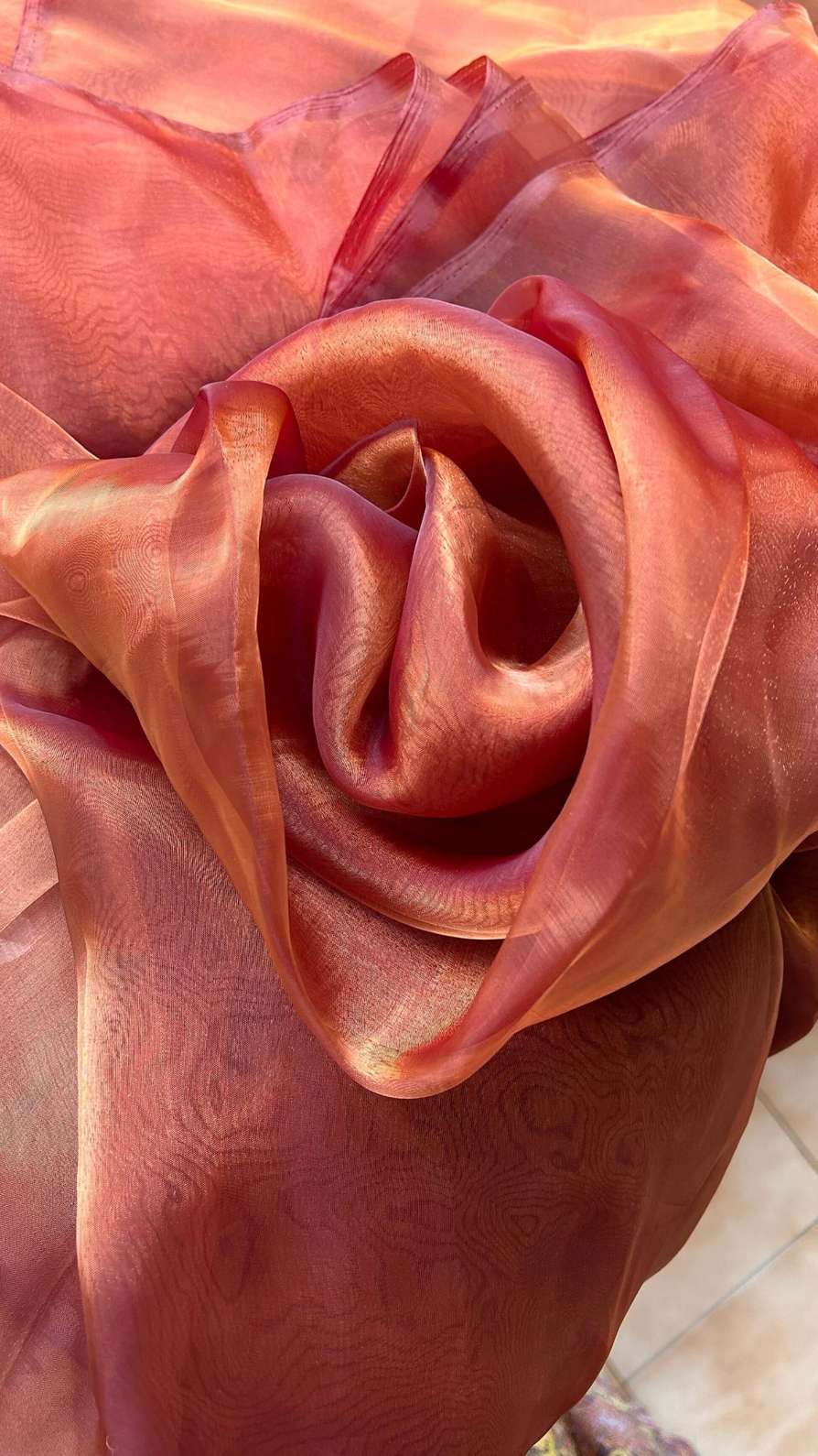 woman in orange maroon brown organza soft saree