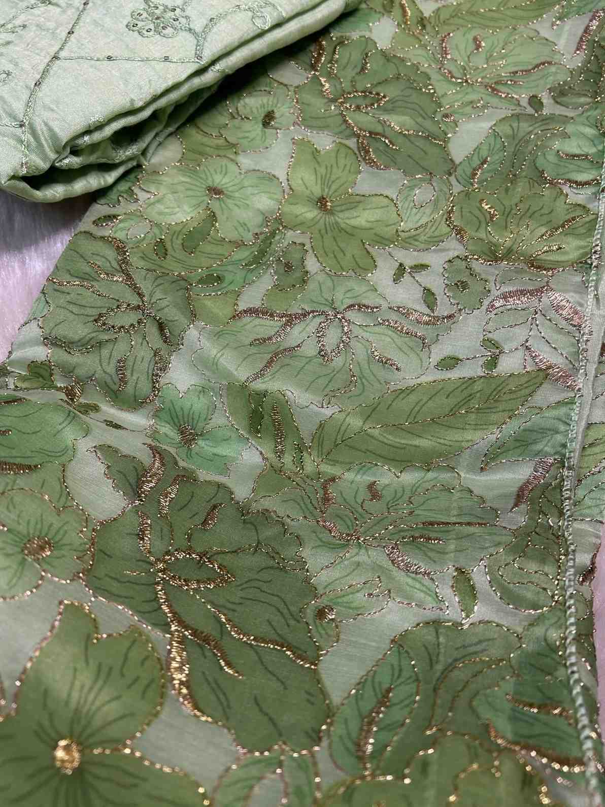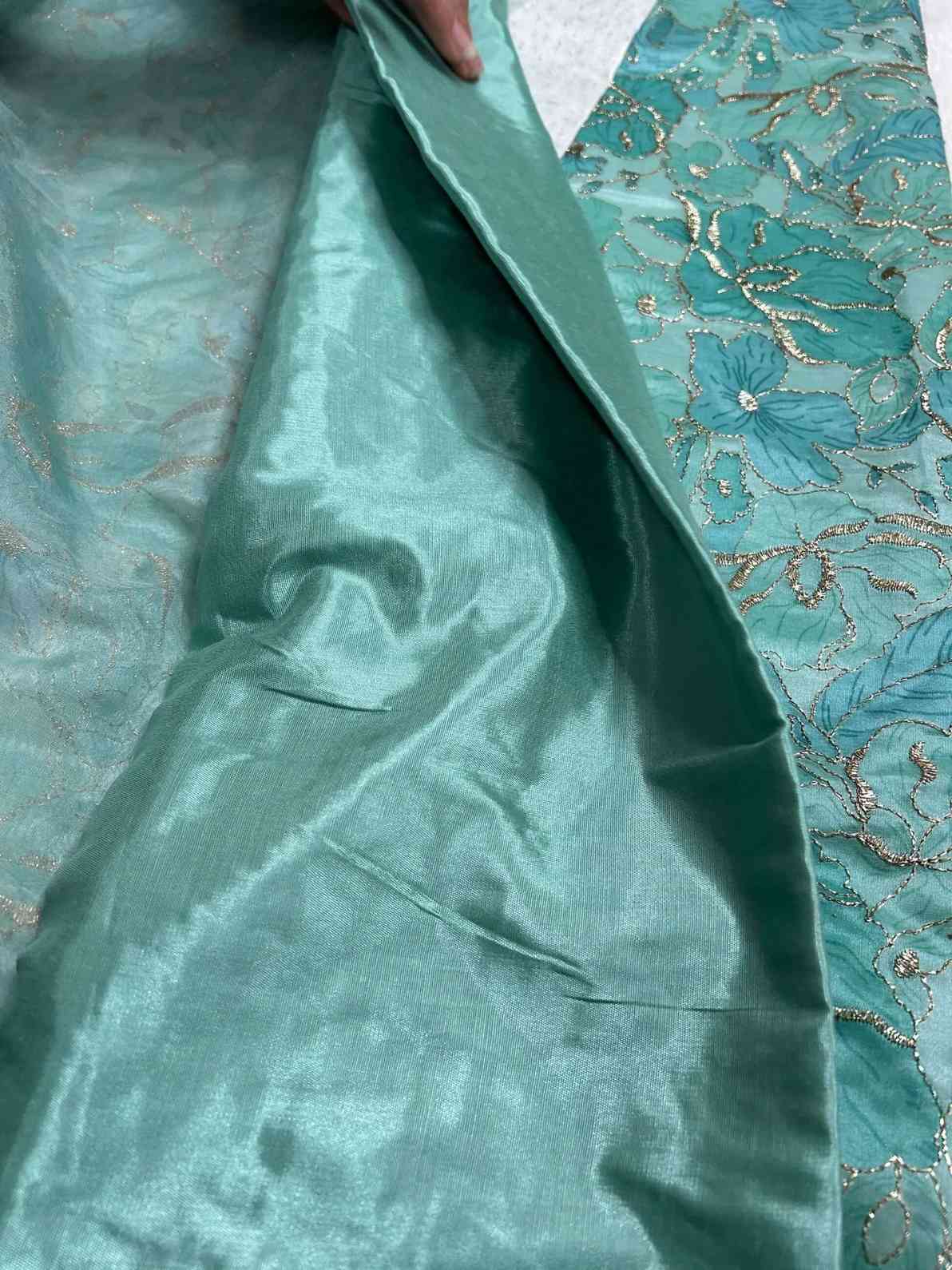 Organza and tissue sarees are naturally sheer and lightweight. We recommend pairing them with a matching blouse and underskirt/petticoat for comfortable coverage.