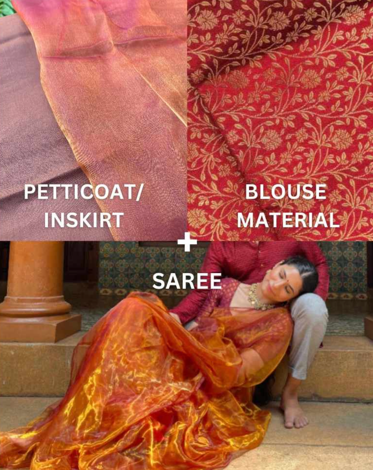 Our collection includes glowing organza sarees, rich banarasi sarees, fluid satin sarees, light linen tissue sarees, and stunning festive sarees — each crafted for weddings, farewells, and everyday grace. We also make inclusive free size dresses with pockets, kaftan dresses, and maternity styles.