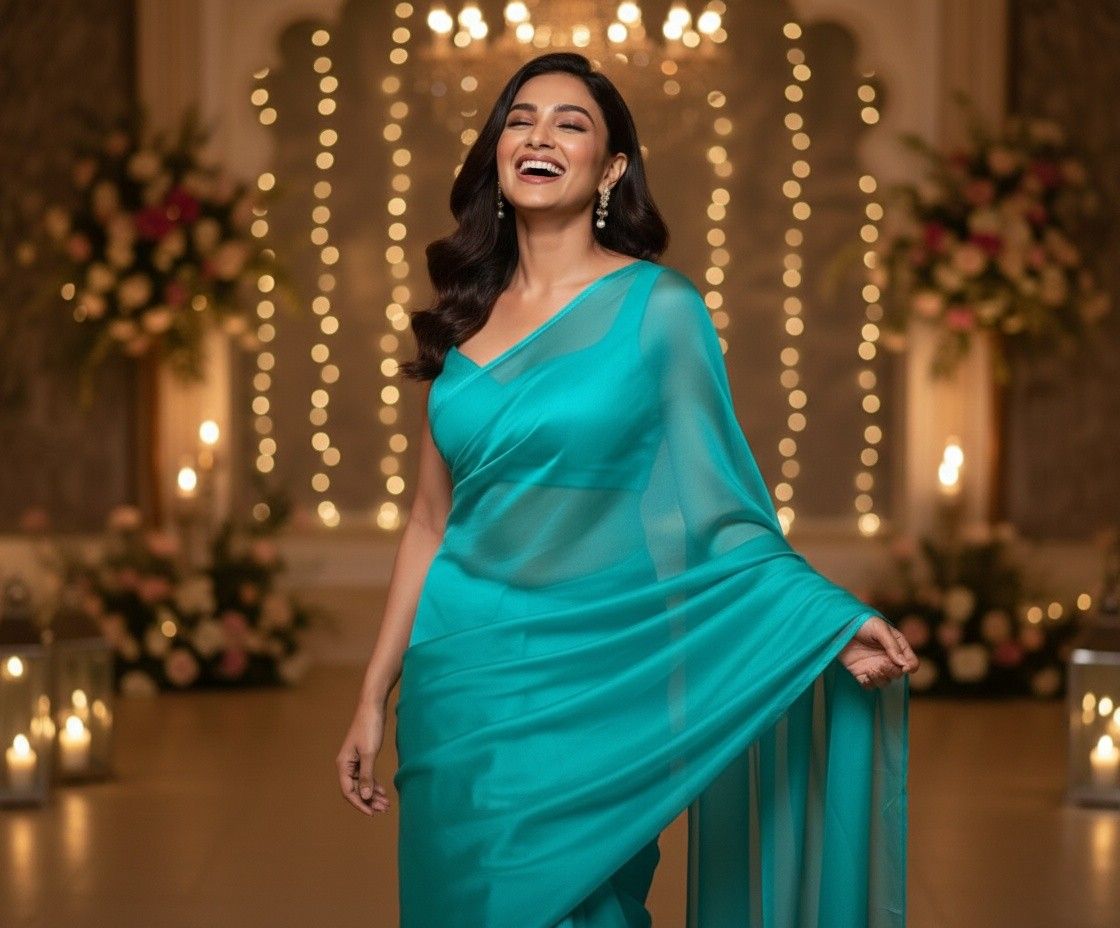 Avoid direct heat. For a wrinkle-free finish without ironing, simply fold and place under your mattress overnight – a trusted saree hack used by generations.