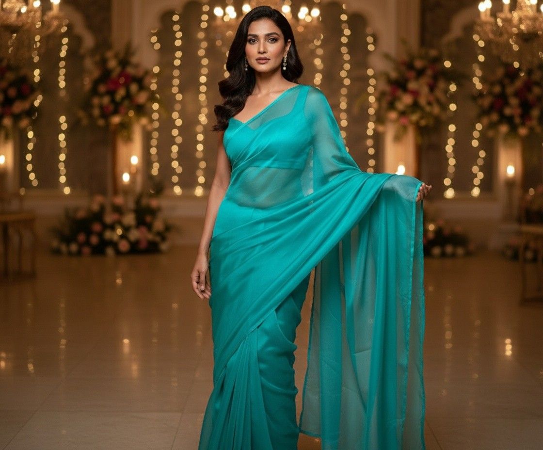 Bright Blue Organza Saree – Lightweight Elegance for Every Occasion