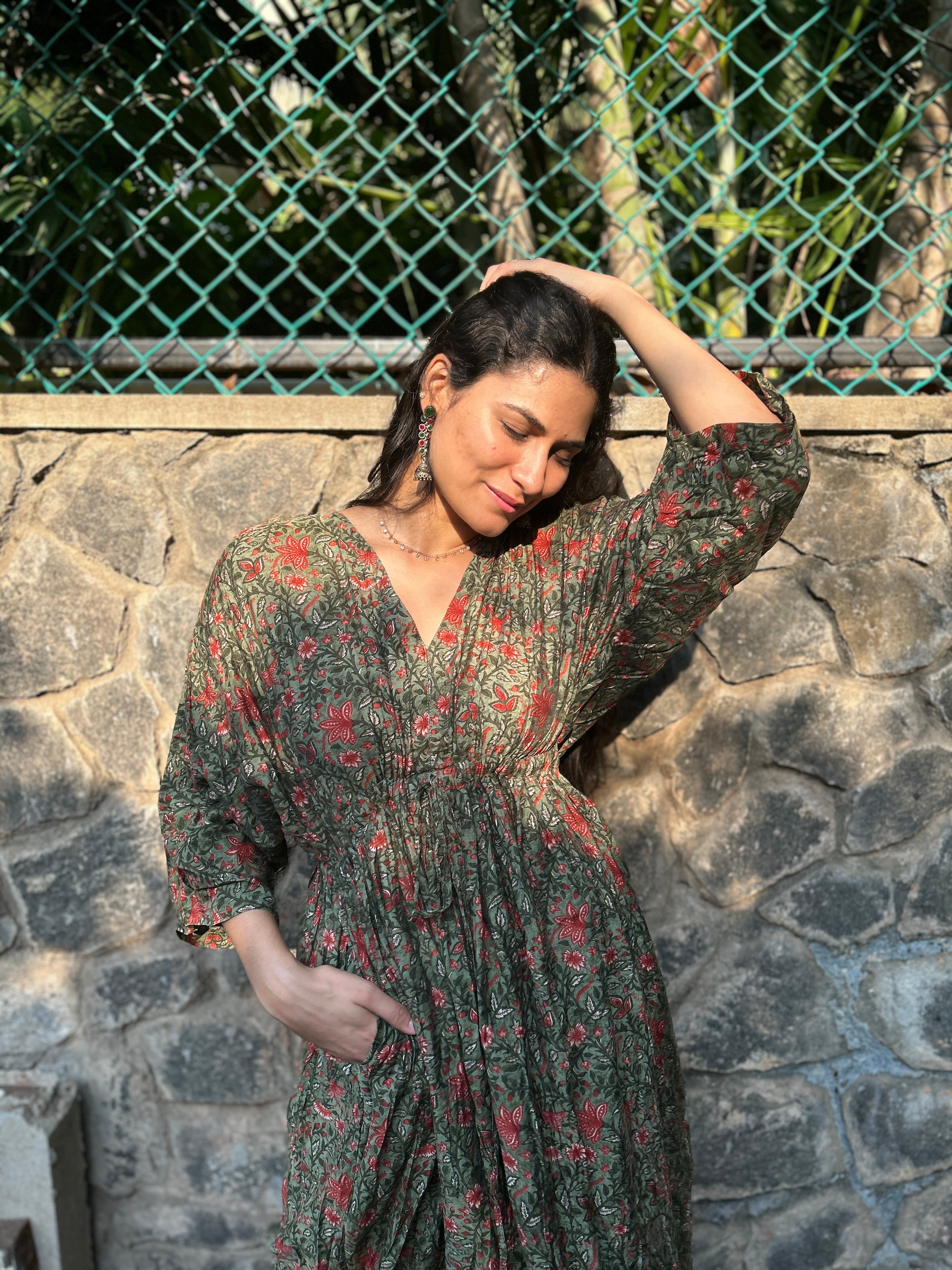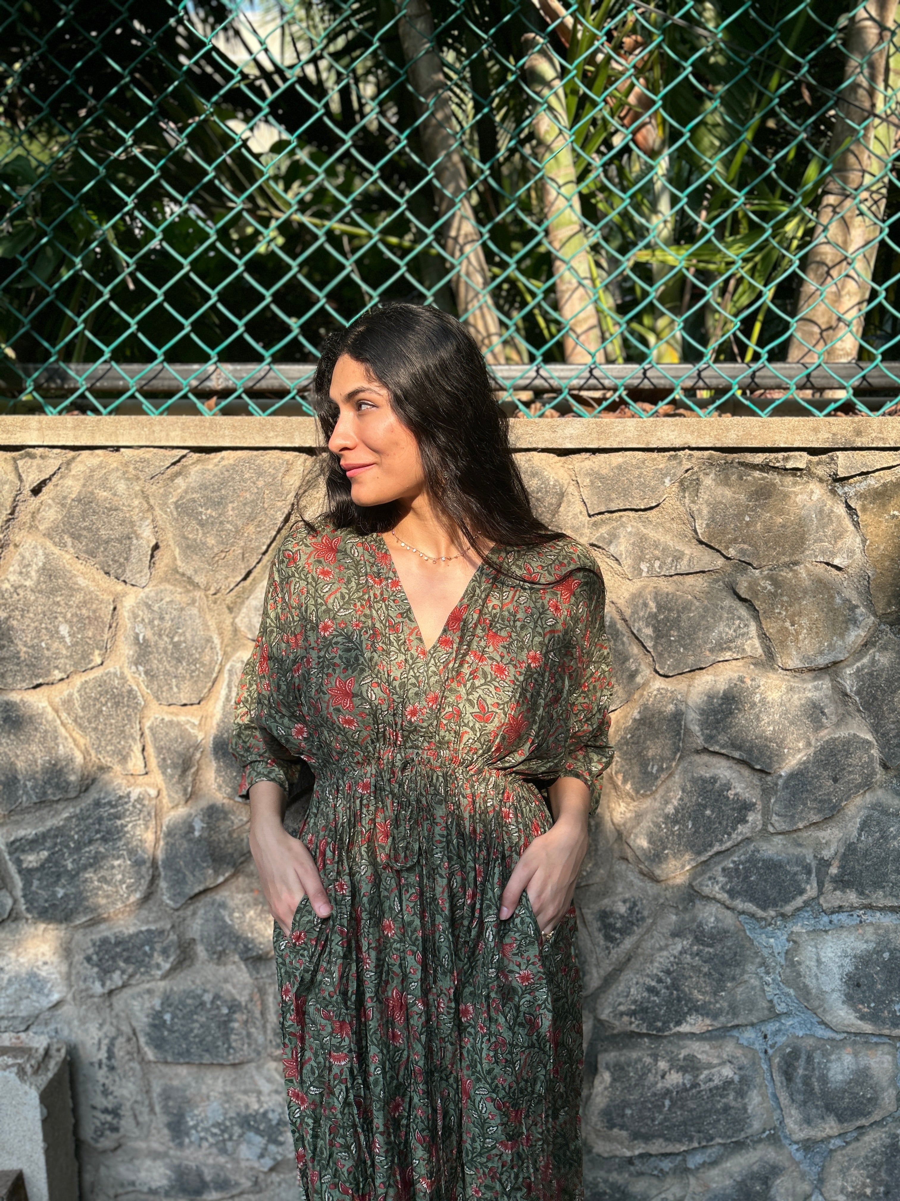 How do I check the sizing for your free size dresses with pockets?