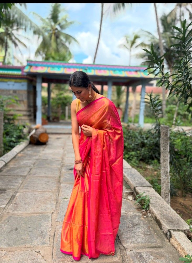 Organza and tissue sarees are naturally sheer and lightweight. We recommend pairing them with a matching blouse and underskirt/petticoat for comfortable coverage.